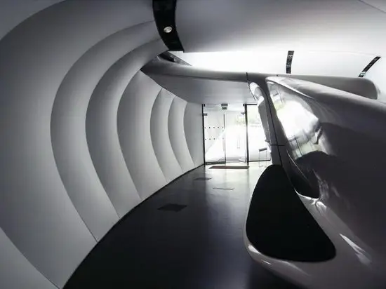 (圖1-7)Zaha Hadid設(shè)計的香奈兒移動藝術(shù)館由香奈兒捐贈。將幫助推廣多元文化的交流活動,建筑結(jié)構(gòu)的形態(tài)既包含概念上的隨意性,同時具備功能上的考慮。流動的幾何形體和有機的線條組成了一個流動且充滿張力的空間。這里充滿了光線與黑暗的對立,內(nèi)部與外部的對立,自然與人工的對立。起伏的表皮與流動的體積匯集一點,不斷重新定義著每個展示空間的品質(zhì)與感受,同時引導(dǎo)著參觀者的行為與路線。